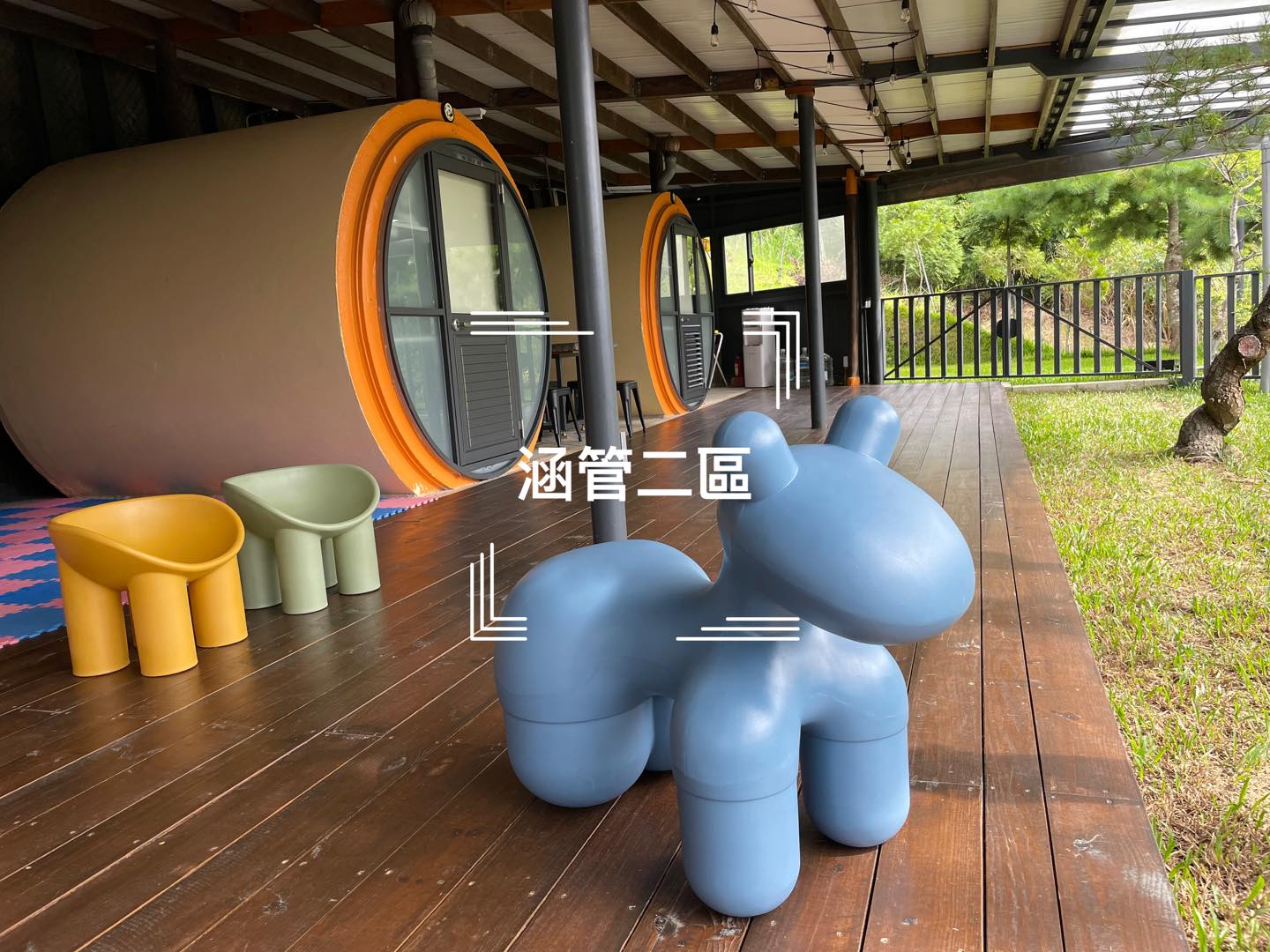 ♦ 涵管一/二區:前方活動草皮或獨立包區,體驗洞穴般的安全感。